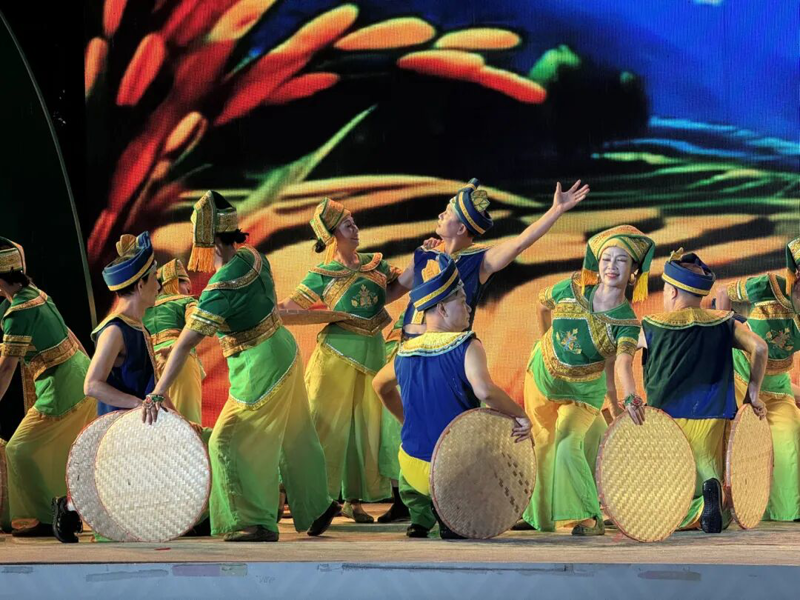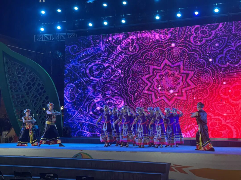 演出当晚,由南宁莺歌艺术团舞蹈《幸福八桂》正式拉开本次活动的帷幕,欢快的舞蹈点燃现场氛围。非遗项目壮族手镖《壮族古俍兵绝技表演》将现场气氛推上高潮,吸引众多群众驻足观看并不时喝彩;舞蹈《苗家儿女的幸福生活》《侨乡风情》《壮族大歌》《晒秋》等具有浓郁民族特色、鲜明地域特点文艺节目,为现场增添了浓厚的民族风情;最后全体高唱《歌唱祖国》,用最嘹亮的歌声,表达对祖国深切热爱与美好祝福,为2025年南宁周周演群众文化活动西乡塘区专场文艺演出活动画上圆满的句号。