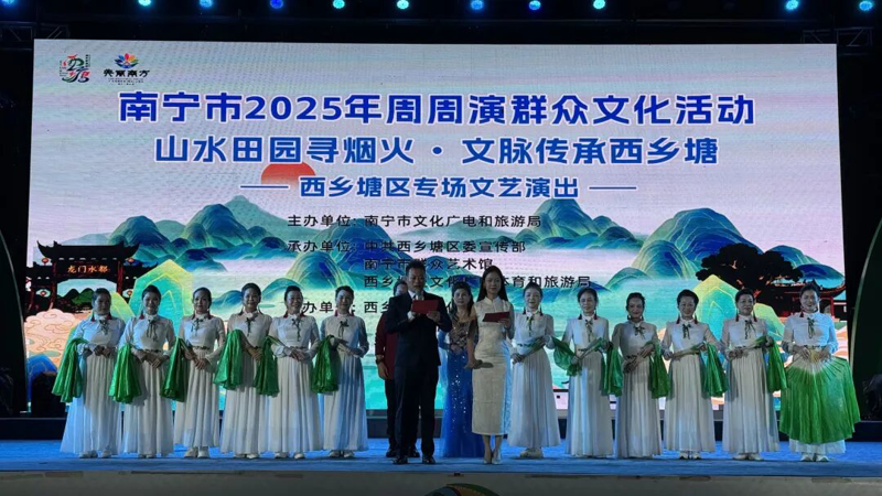 9月28日晚,由南宁市文化广电和旅游局主办,中共西乡塘区委宣传部、南宁市群众艺术馆、西乡塘区文化广电体育和旅游局承办,西乡塘区文化馆协办的南宁市2025年周周演群众文化活动西乡塘区专场文艺演出在百益上河城舞台精彩上演,给广大群众们带来一场听觉和视觉上精彩绝伦的文化“盛宴”。