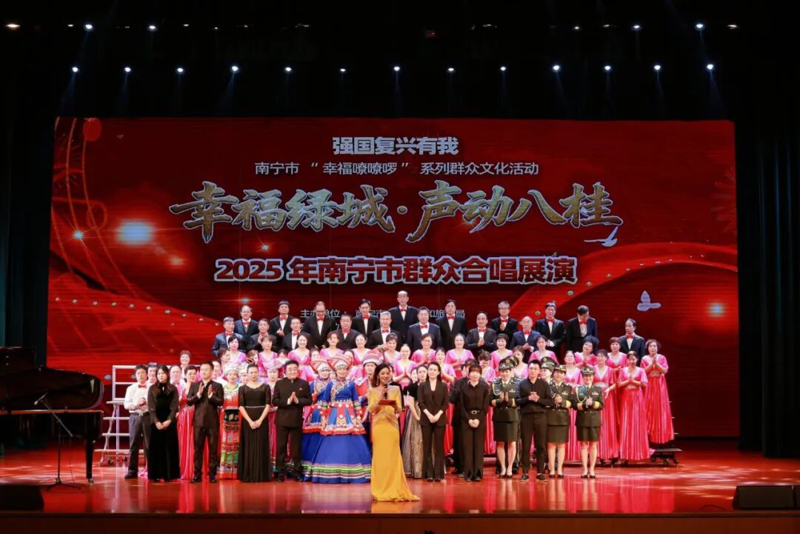 冬韵流芳,歌声飞扬。12月5日,南宁市“幸福嘹嘹啰”系列群众文化活动——“幸福绿城・声动八桂”2025年南宁市群众合唱展演在南宁市群众艺术馆剧场圆满落幕。8支扎根基层的优秀合唱队伍齐聚舞台,以混声合唱、无伴奏合唱等多元艺术形式,为现场观众呈现了一场集民族性、艺术性、群众性于一体的文化盛宴。