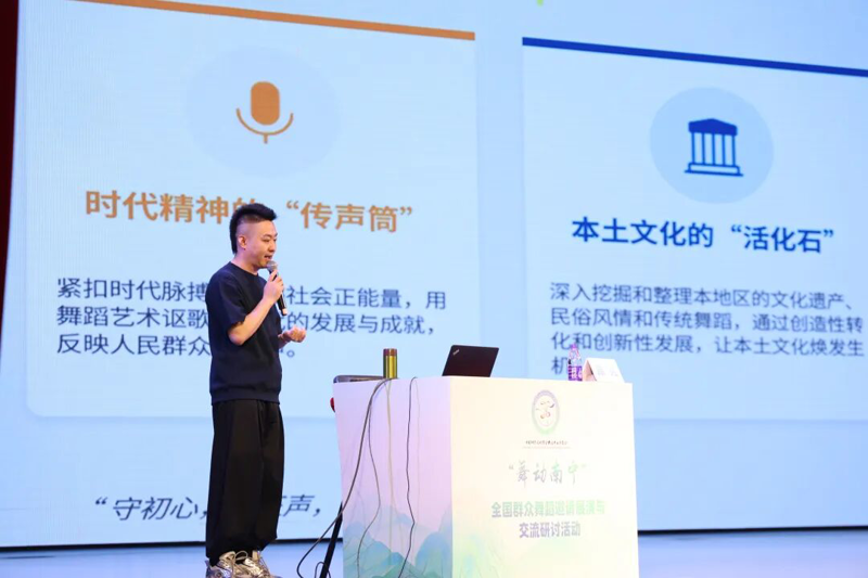 活动分为专家研讨授课与全国精品舞蹈展演两大核心环节,兼具专业性、艺术性与群众性。上午,中国群众文化学会舞蹈专业委员会秘书长、北京市文化馆团队管理部主任原亮,中国东方演艺集团中国歌舞团原团长、一级编导甘露两位行业资深专家亲临现场,围绕群众舞蹈创作创新、表演技法、基层推广等核心内容,分享前沿理念、解答创作难题,为到场的群文工作者、舞蹈爱好者带来一场干货满满的专业赋能,全面助力提升基层群众舞蹈的创作与表演水平。