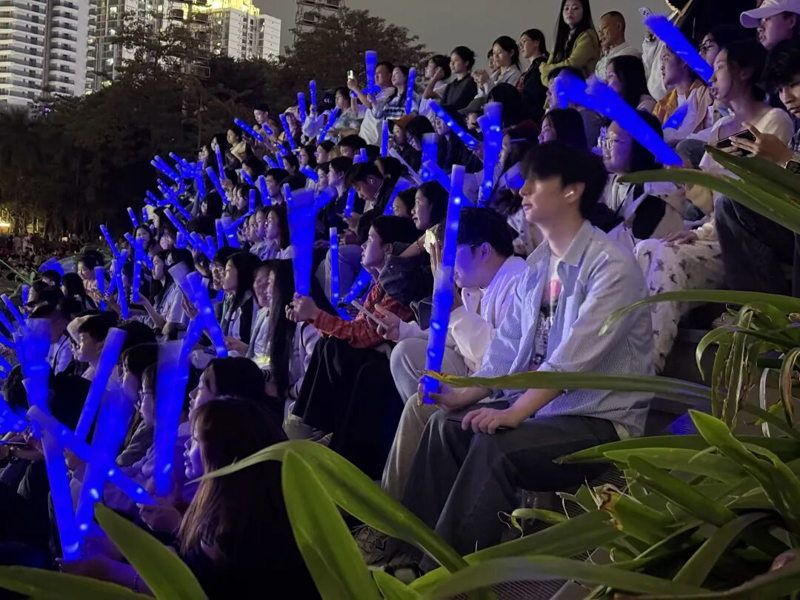 荧光棒随着鼓点挥舞成星海,耳熟能详的旋律在故中人的现场演绎中焕发新生,年轻人跟着节奏自发开启全场大合唱,连续两场“国潮音浪”让台下乐迷直呼“超带感”!