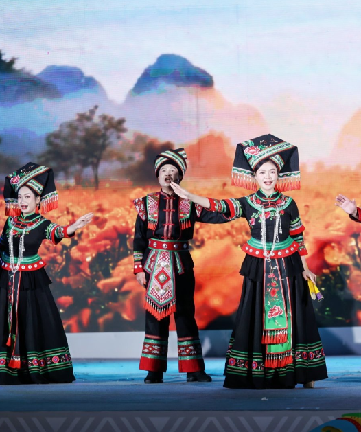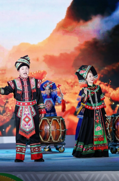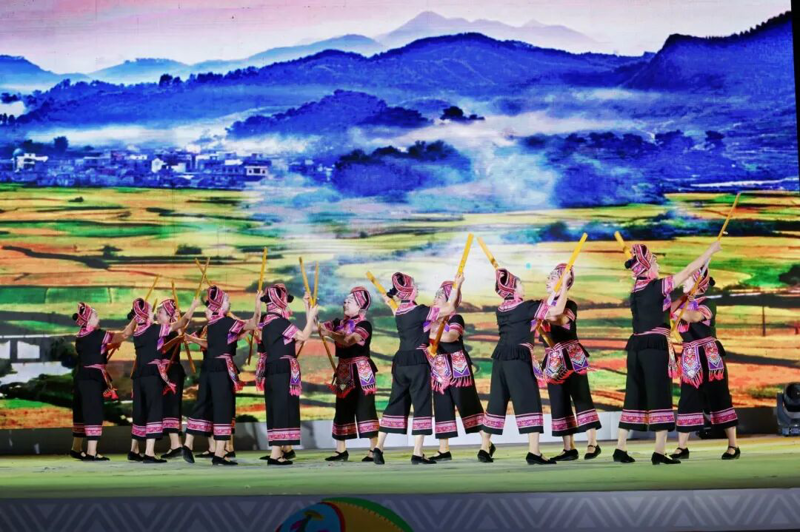 演出以“文化火种映山乡”“石榴花开向阳生”“同心共绘新篇章”三大篇章为脉络,巧妙串联起乡村振兴、人文关怀、非遗传承、民族团结等核心主题。从乡村文艺队的质朴演绎到非遗技艺的活态呈现,从特殊群体代表的真诚表达到各民族同胞的同心欢歌,一个个节目既展现了文化志愿服务的广度与深度,更传递出“文化惠民、志愿暖心”的动人力量,让文化志愿的故事在舞台上生动铺展、直抵人心。
