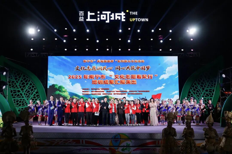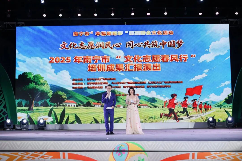 歌声飞扬传递志愿温情,舞姿翩跹展现文化活力。11月23日晚,“文化志愿润民心 同心共筑中国梦——2025年南宁市‘文化志愿春风行’培训成果汇报演出”在江南区百益上河城精彩上演。来自全市各县(市、区)的文化志愿者、基层群众演员及特殊群体代表齐聚一堂,用15个精心编排的节目全方位展现“文化志愿春风行”一年来的实践成果,为现场及线上观众带来一场兼具思想深度、艺术美感与情感温度的文化盛宴。