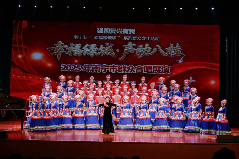 冬韵流芳,歌声飞扬。12月5日,南宁市“幸福嘹嘹啰”系列群众文化活动——“幸福绿城・声动八桂”2025年南宁市群众合唱展演在南宁市群众艺术馆剧场圆满落幕。8支扎根基层的优秀合唱队伍齐聚舞台,以混声合唱、无伴奏合唱等多元艺术形式,为现场观众呈现了一场集民族性、艺术性、群众性于一体的文化盛宴。