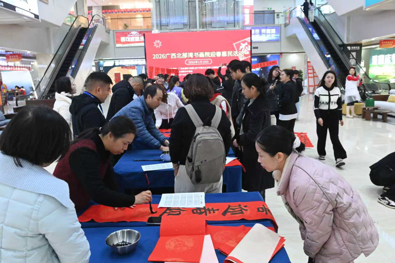 2026年1月10日,由南宁市群众艺术馆联合广西北部湾书画院主办、万泰隆空中花园承办的“迎春送福”文化惠民志愿服务活动,在南宁万泰隆家具城广场温情举行。活动依托文化志愿服务体系,组织文化志愿者深入市场一线,以传统书法艺术为载体,为广大商户、企业员工及市民送上新春祝福,让中华优秀传统文化在基层落地生根、温润人心。