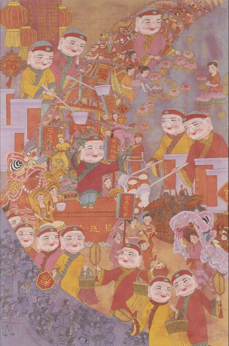 福赠丹青祈丰年,云端展卷迎新春。为传承中华优秀传统文化,丰富群众的精神文化生活,我们于丙午新春之际,特别推出本期线上展览,聚焦艺术家雷音音根植于农民画传统的新乡土绘画作品。她的创作以炽热的情感、饱满的色彩和质朴的叙事,将八桂大地的风土人情、节庆民俗转化为一幅幅生机盎然的视觉诗篇,在浓浓年味中传递着最真挚的吉祥祝愿。